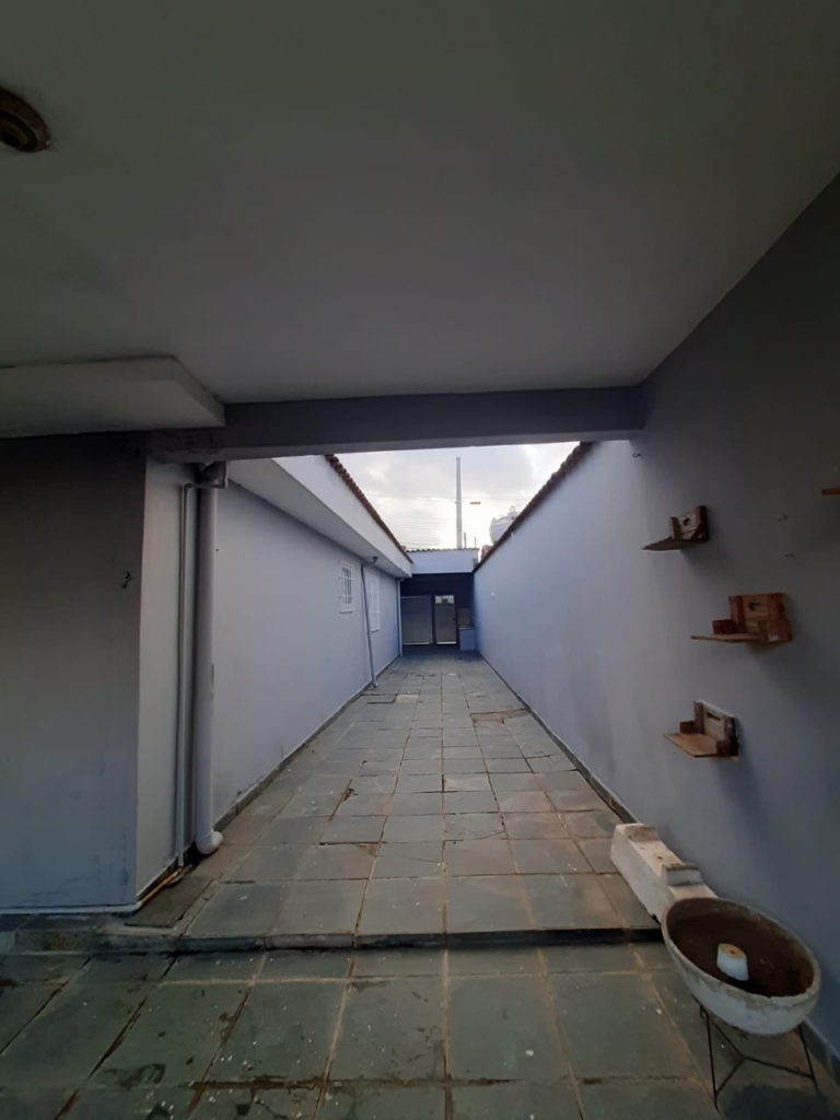 Corredor lateral e garagem descoberta.